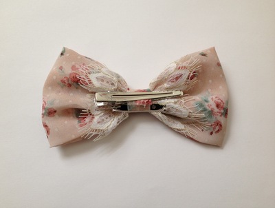 Lovely addition to your accessory collection. This magical, lightly colored hair bow is designed with floral print and lace material to go perfectly with your summer outfits!