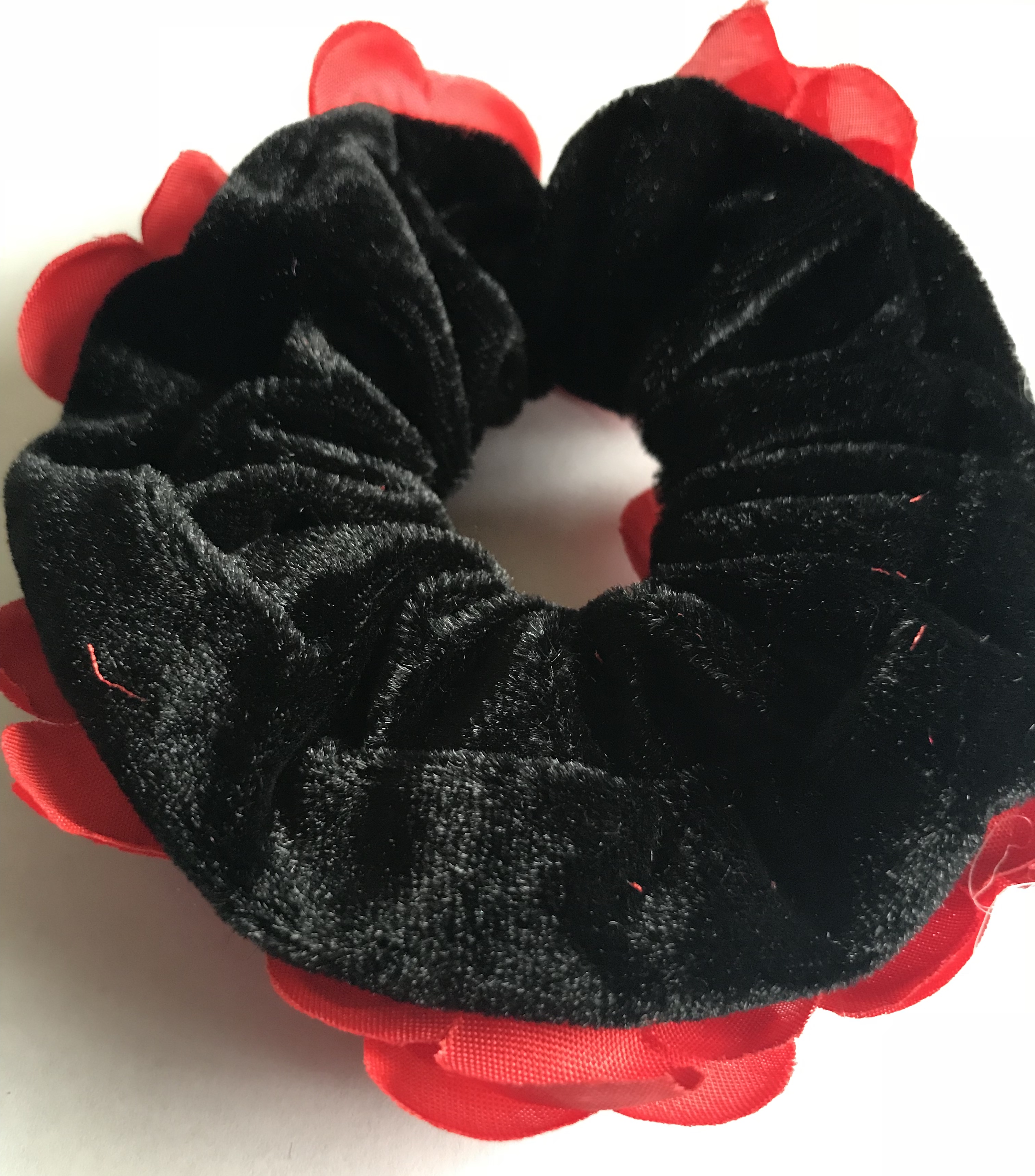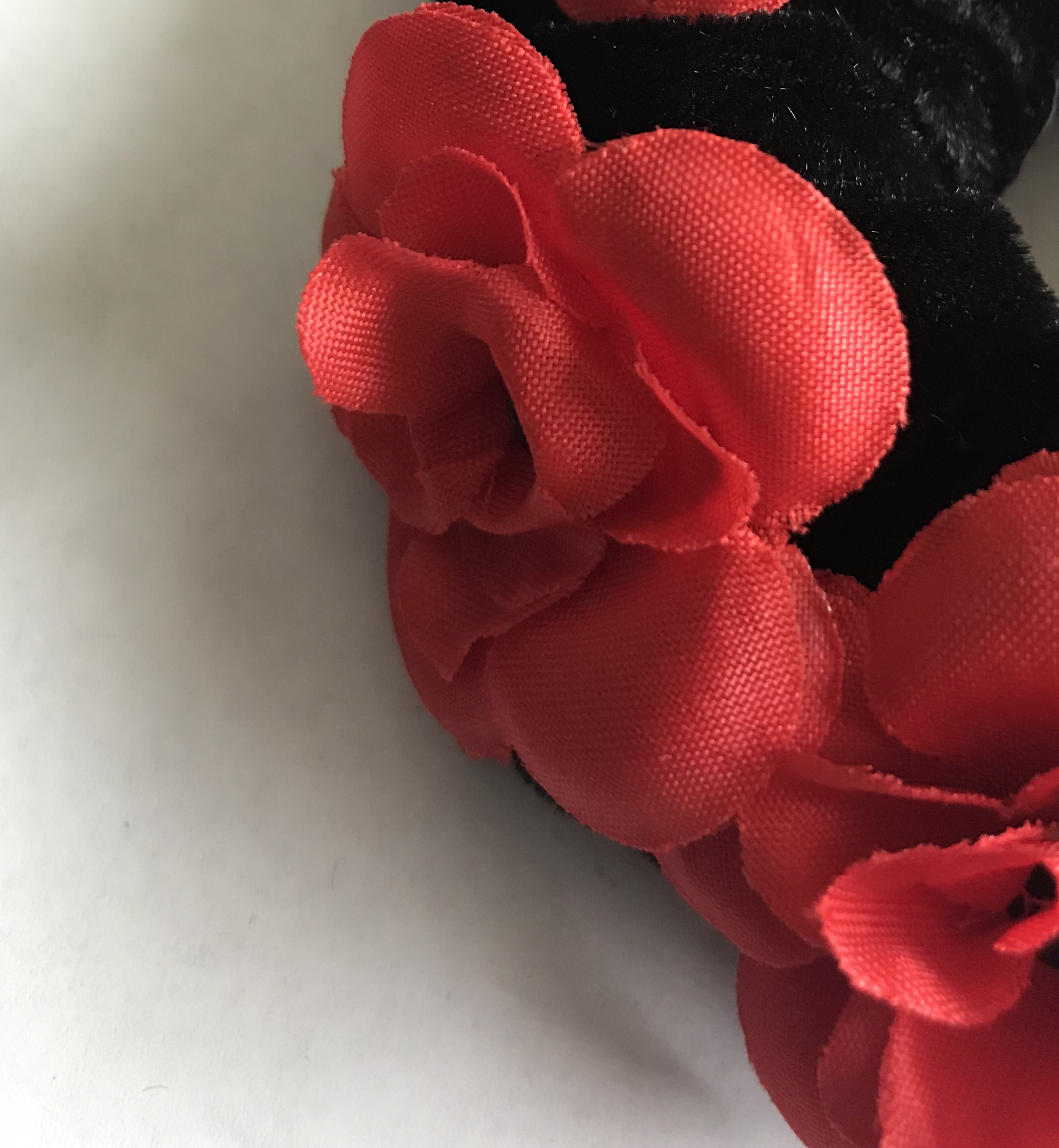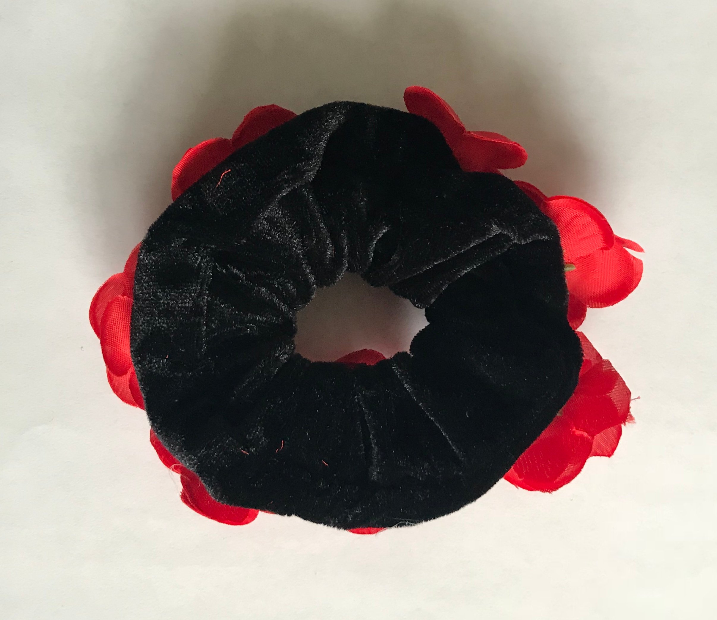 Adorable and retro, 80s-reminiscent, rose bud scrunchie. Perfect for bridal or wedding wear, recitals, formal events, etc.
