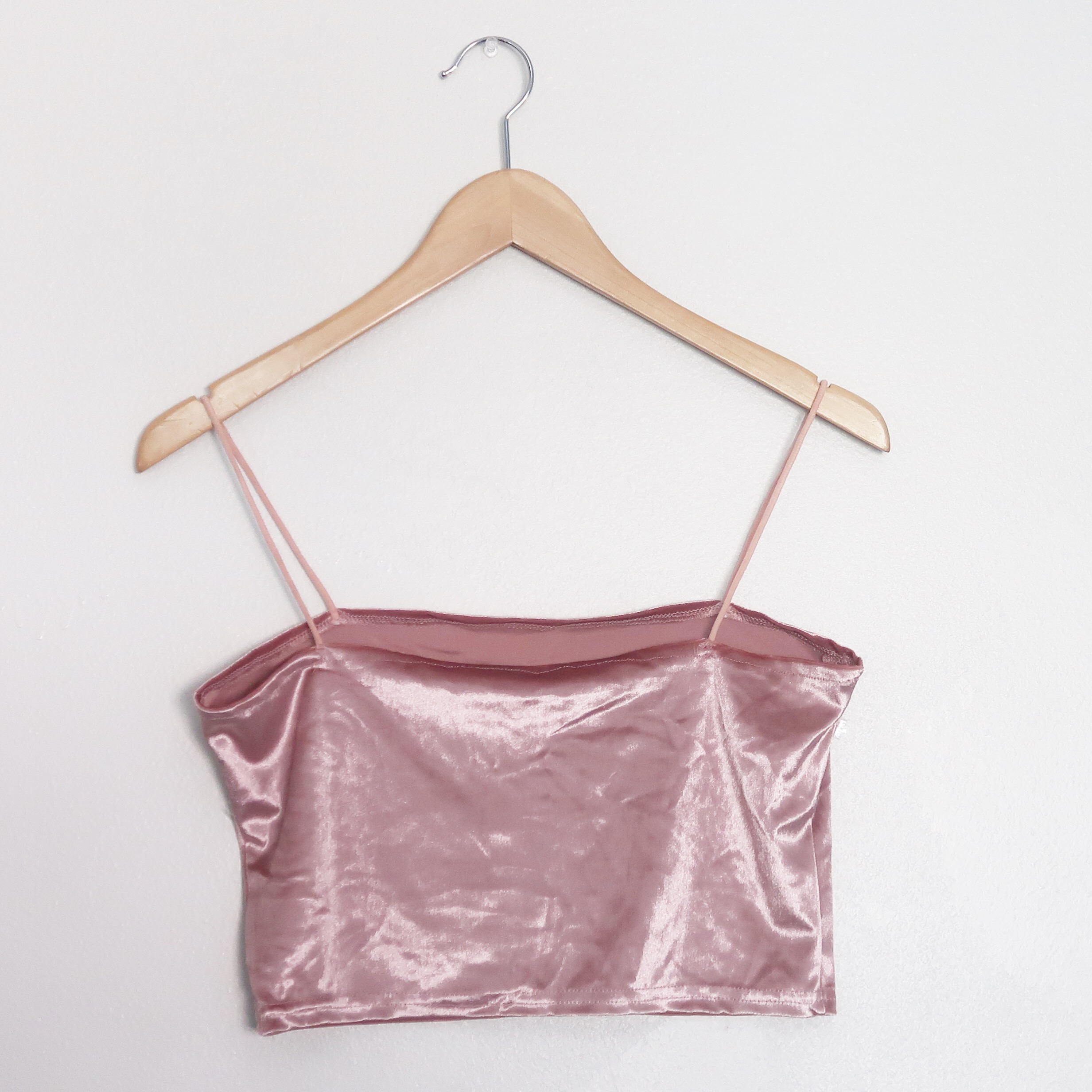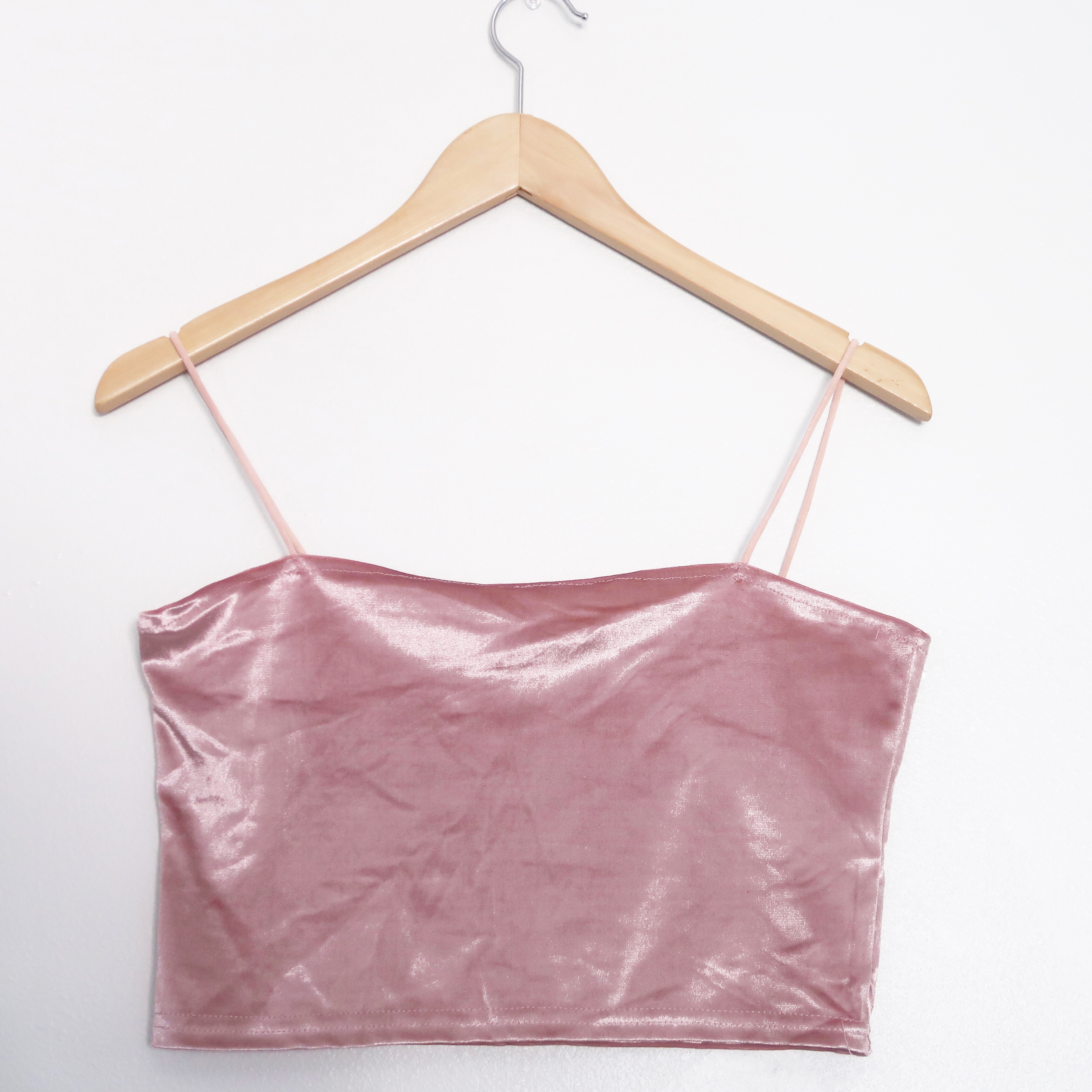 Lovely, rosy, pink, and velvety cropped tank top. This adorable cami has a comfortable stretchy fit and soft material.