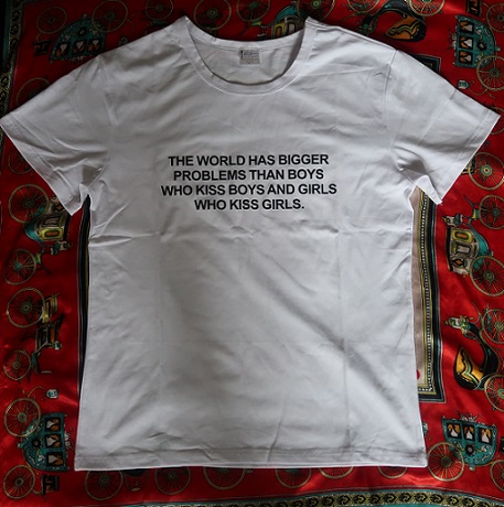 "The world has bigger problems than boys who kiss boys and girls who kiss girls".